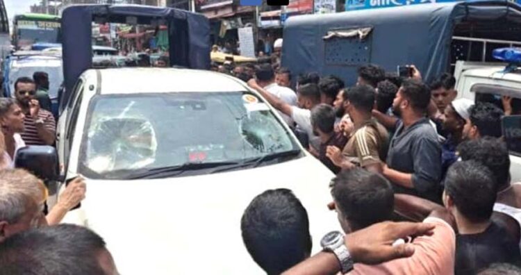 নোয়াখালীর মাইজদী শহরে ভ্রাম্যমাণ আদালত পরিচালনার সময় নির্বাহী ম্যাজিস্ট্রেটের গাড়ির উপর হামলার ঘটনা ঘটেছে। ঘটনা ঘটে সোমবার (১ সেপ্টেম্বর) দুপুর বারোটার দিকে, যখন জেলা স্কুলের সামনে সড়কে এ ঘটনা ঘটে। স্থানীয়রা জানায়, সকাল সাড়ে এগারোটার দিকে নোয়াখালী জেলা প্রশাসনের সহকারী কমিশনার ও নির্বাহী ম্যাজিস্ট্রেট মো. ফাহিম হাসান খান নেতৃত্বে ভ্রাম্যমাণ আদালত পরিচালিত হচ্ছিল। এর সময় সড়কের পাশে অবৈধভাবে রাখা বিভিন্ন ধরনের গাড়ি ডাম্পিং করা হচ্ছিল। এই পরিস্থিতিতে আহত হন গাড়ির মালিক ও চালকরা, যারা ক্ষুব্ধ হয়ে শহরের প্রধান সড়ক পুরোপুরি অবরুদ্ধ করে নির্বাহী ম্যাজিস্ট্রেটের গাড়ি ভাঙচুর শুরু করে। খবর পেয়ে স্থানীয় সেনাবাহিনী ও পুলিশ দল ঘটনাস্থলে আসেন এবং দ্বিপক্ষের আলোচনা শেষে পরিস্থিতি নিয়ন্ত্রণে আনেন বিকেলের দিকে। জেলা প্রশাসন সূত্র জানায়, নোয়াখালীতে বাস, প্রাইভেট কার ও মাইক্রোবাস চালকদের জন্য নির্দিষ্ট স্ট্যান্ড বরাদ্দ করা হয়েছে। তবে অনেক চালক সেখানে না রেখে শহরের প্রধান সড়কে এলোমেলোভাবে গাড়ি পার্ক করেন, ফলে যানজটের সৃষ্টি হয়। এ বিষয়ে প্রশাসন বারবার নিষেধ করলেও তারা মানতে চান না। জেলা প্রশাসক খন্দকার ইসতিয়াক আহমেদ বলেন, নির্বাহী ম্যাজিস্ট্রেটকে অবরুদ্ধ করার খবর পেয়ে দ্রুত সে পরিস্থিতি শান্ত করতে পুলিশ ও সেনাবাহিনী পাঠানো হয়। তারা উভয় পক্ষের সঙ্গে আলোচনা করে পরিস্থিতি স্বাভাবিক করে।