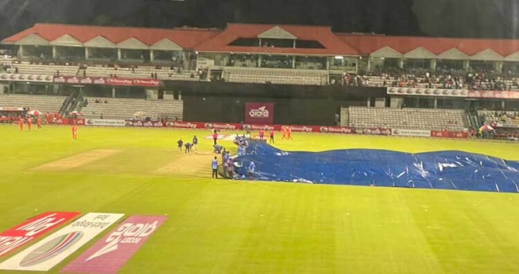 অধিনায়ক লিটনের ব্যাটে বাংলাদেশ শক্তিশালী শুরু করে। প্রথম পাঁচ ওভারে দলের স্কোর ছিল বেশ ভাল। কিন্তু ঈশ্বরের ইশারায় বৃষ্টি এসে যায়, ইনিংসের পঞ্চম ওভারে হানা দেয় আবহাওয়া। বৃষ্টির কারণে উইকেট কিছুটা স্লো হয়ে যায়, ফলে রান তুলতে ব্যাটারদের কষ্ট হয়। তারপরেও এক প্রান্ত ধরে লিটন দাস দাপটের সঙ্গে ব্যাটিং চালিয়ে গেছেন। তিনি ব্যক্তিগত ফিফটি ছুঁইছুঁই করেছেন, ২৭ বলে এই মাইলফলক অর্জন করেন।