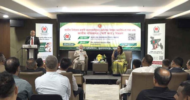 প্রথমবারের মতো জাতীয় নির্বাচনে প্রবাসী বাংলাদেশিদের ভোটাধিকার নিশ্চিত করতে কুয়ালালামপুরে একটি গুরুত্বপূর্ণ সভা ও জাতীয় পরিচয়পত্র (স্মার্টকার্ড) বিতরণ অনুষ্ঠানের আয়োজন করা হয়েছে। এই উদ্যোগের মাধ্যমে প্রবাসীরা দেশের নির্বাচনে সক্রিয় অংশগ্রহণের পথ সুগম হবে।
