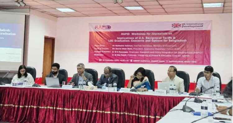 বাণিজ্য সচিব মাহবুবুর রহমান বলেছেন, সরকার এলডিসি (স্বল্পন্নোত দেশ) থেকে উত্তরণ বা গ্রাজুয়েশন সময়কাল আরও কিছুদিন বাড়ানোর চেষ্টা করছে। এই পরিকল্পনাটি বাস্তবায়নের জন্য তারা বিভিন্ন মতামত গ্রহণ করছে, কারণ মূল লক্ষ্য হচ্ছে বাংলাদেশের জন্য বাণিজ্য সুবিধাগুলোর আরও কিছুদিন অব্যাহত রাখা। তবে, এই প্রক্রিয়াটির সফলতা এখনো অনিশ্চিত, কারণ বিশ্বের বিভিন্ন দেশ, বিশেষ করে বাংলাদেশের ঘনিষ্ঠ কিছু বন্ধুপ্রতিম দেশ জাপান, তুরস্ক, ভারত এবং যুক্তরাষ্ট্র, এ বিষয়ে বিরোধিতা করছে। ফলে, জাতিসংঘের সাধারণ পরিষদে এ বিষয়ে রেজ্যুলেশন পাস করানো কঠিন হচ্ছে। এর ফলে, বাংলাদেশের জন্য বিশেষ করে যুক্তরাষ্ট্রের পাল্টা শুল্কের কারণে অর্থনীতিতে কিছুটা নেতিবাচক প্রভাব إতে পারে। আগামী এক বছরে বাংলাদেশি পণ্যের রপ্তানি সম্ভবত ১৪ শতাংশ কমে যেতে পারে বলে ধারণা করা হচ্ছে। চীনা পণ্য রপ্তানির পরিমাণ ৫৮ শতাংশ, ভারতের ৪৮ শতাংশ, ভিয়েতনামের ২৮ শতাংশ ও ইন্দোনেশিয়ার ২৭ শতাংশ কমতে পারে। তিনি আরও বলেন, এই পরিস্থিতি মোকাবিলায় বাংলাদেশ এখনকার মতো পরিস্থিতি বিবেচনা করে বিভিন্ন প্রযুক্তিগত সহায়তা গ্রহণের চেষ্টা চালিয়ে যাচ্ছে।