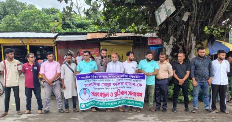 সাংবাদিক নির্যাতন বন্ধ করে স্বাধীন গণমাধ্যম নিশ্চিত করার আহবান নিয়ে বরিশালের গৌরনদী উপজেলার জাতীয় দৈনিক খোলা কাগজের সংবাদদাতা মোল্লা ফারুক হাসানের বিরুদ্ধে ষড়যন্ত্রমূলক মিথ্যা মামলার প্রতিবাদে এক মানববন্ধন ও প্রতিবাদ সমাবেশ অনুষ্ঠিত হয়েছে। এই কর্মসূচি সংগঠিত হয় ১লা অক্টোবর বুধবার সকাল ১১টায় গৌরনদী বাসস্ট্যান্ডের সামনে। এটি গৌরনদী সাংবাদিক ফোরামের পক্ষ থেকে আয়োজন করা হয়। সভাপতিত্ব করেন সংগঠনের আহবায়ক সরদার মনিরুজ্জামান, উপস্থিত ছিলেন উপদেষ্টা সৈয়দ নকিবুল হক, যুগ্ম আহবায়ক কাজী রনি, সদস্য সচিব মেহেদী হাসান, যুগ্ম-সদস্য সচিব ইয়াদুল ইসলাম, আবদুল্লাহ আল-নোমান, সদস্য সুমন তালুকদার, মাসুদ সরদার, জসীম উদ্দিন হাওলাদার, রুহুল আমিন, সিফাত হোসেন এবং আরও অনেকে।
