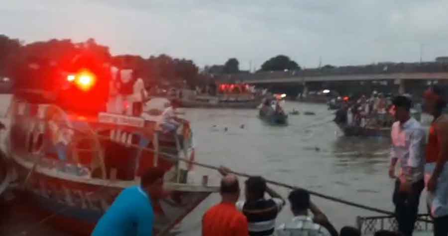 গাজীপুরের তুরাগ নদে বিজয় দশমীর প্রতিমা বিসর্জনের সময় এক ইঞ্জিনচালিত নৌকা ডুবে গেছে। এতে নিখোঁজ দুই শিশুর মধ্যে একজনের লাশ উদ্ধার করা হয়েছে। নিহত শিশুটির নাম অঙ্কিতা রানি দাস (৪)। শুক্রবার (৩ অক্টোবর) ভোর সাড়ে ৯টায় জেলার কালিয়াকৈর উপজেলার চাপাইর সেতুর কাছ থেকে তার মরদেহ উদ্ধার করে ফায়ার সার্ভিসের ডুবুরি দল। বর্তমানে, অপর নিখোঁজ শিশু তন্ময় (১০) সন্ধান চালানো হচ্ছে।