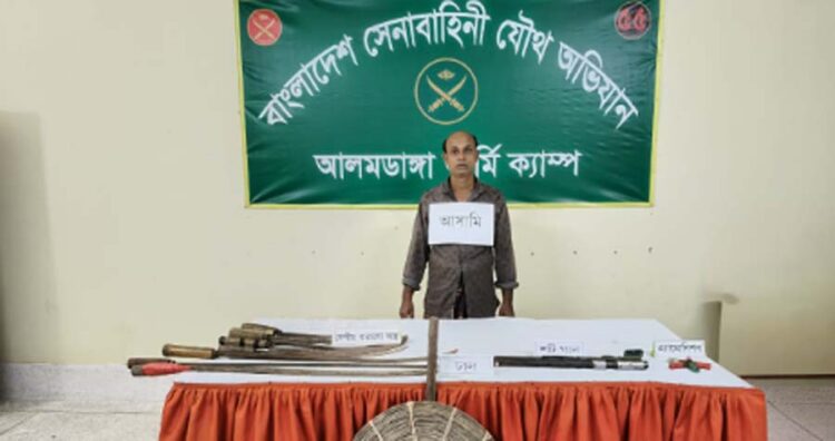 সূত্র জানায়, গোপন সংবাদের ভিত্তিতে এ সময় সেনাবাহিনীর বিএ-১০৯৪৯ ক্যাপ্টেন সৌমিক আহমেদ অয়ন এর নেতৃত্বে সাঁড়াশি অভিযান চালানো হয়। অভিযানে নিহত জসิมের ছেলে সোয়াদ কেশবপুর পূর্বপাড়ার স্থায়ী বাসিন্দা। ঘরের ভিতরে তল্লাশি চালিয়ে একটি শট গান, পাঁচ রাউন্ড গুলি, নয়টি ধারালো দেশীয় অস্ত্র এবং একটি ঢাল উদ্ধার করা হয়।