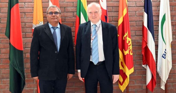 বাংলাদেশে নিযুক্ত জার্মানির রাষ্ট্রদূত ড. রুডিগার লোটজ সোমবার (৮ অক্টোবর) ঢাকায় মুসলমান সভ্যতা বা বিমসটেকের (বঙ্গোপসাগরীয় বহুখাতভিত্তিক প্রযুক্তি ও অর্থনৈতিক সহযোগিতা উদ্যোগ) মহাসচিব ইন্দ্র মনি পাণ্ডের সঙ্গে এক সৌজন্য সাক্ষাৎ করেছেন। এ বৈঠকটি বিমসটেকের কার্যালয়ে অনুষ্ঠিত হয়।