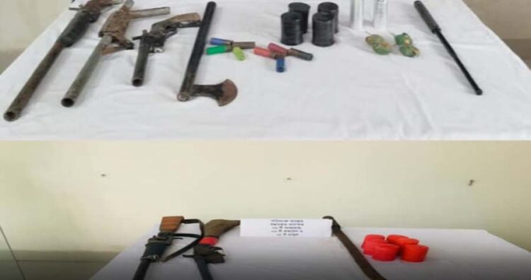 অপরদিকে, সকাল সোয়া আটটার দিকে একই ইউনিয়নের নিভা গ্রামে একটি পাটকাঠির গাদার ভেতর থেকে একটি একনলা বন্দুক, একটি ডিগ্রী পাইপগান, দুটি বড় আকারের হাসুয়া, ছয়টি ককটেল ও পাঁচটি পটকা উদ্ধার হয়।