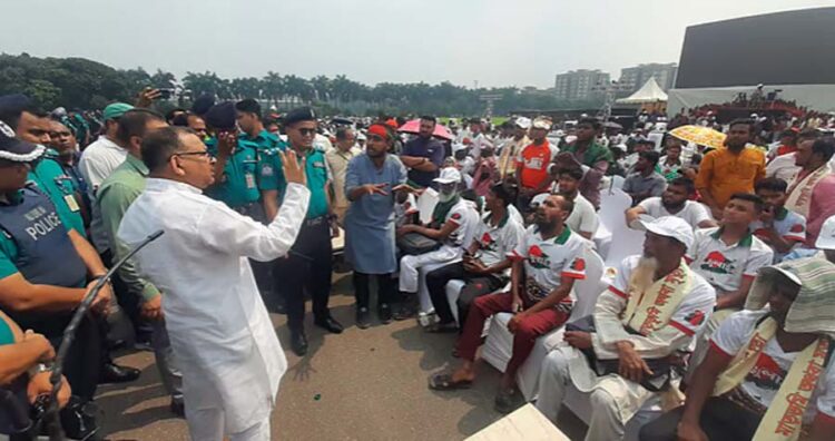 গতকাল বৃহস্পতিবার রাতে আন্দোলনকারীদের জমায়েতের পর সকালে, ‘জুলাই শহীদ পরিবার ও আহত যোদ্ধাদের’ সমর্থনে শতাধিক মানুষ সংসদ ভবন এলাকার ১২ নম্বর গেটের সামনে অবস্থান নেন এবং বিভিন্ন স্লোগান দিতে থাকেন। এক পর্যায়ে তারা গেট টপকে ভিতরে প্রবেশ করে মঞ্চের সামনে এসে অতিথিদের চেয়ারে বসে স্লোগান দিতে থাকেন।