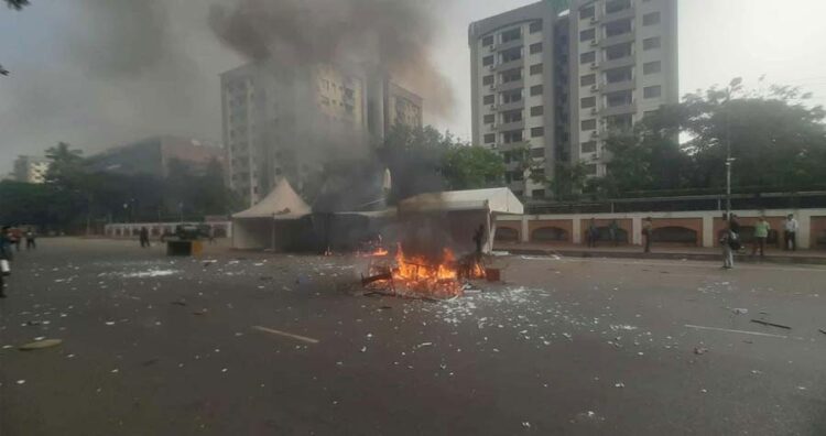 সংঘর্ষের সময় বাইরে থাকা অংশটি ভেঙে গেট ভেঙে ভেতরে প্রবেশ করে। এরপর আন্দোলনকারীরা পুলিশকে লক্ষ্য করে বোতল, চেয়ার নিক্ষেপ করে। পুলিশ তখন সাউন্ড গ্রেনেড ও টিয়ারশেল ছুঁড়ে তাদের ছত্রভঙ্গ করার চেষ্টা করে। এই সময় সড়কে আগুন লাগে এবং ইট-পাটকেল ছোড়াছুড়ি চলে। বেশ কিছু পুলিশি গাড়ি ভাঙচুরের ঘটনাও ঘটে। সংঘর্ষে বেশ কয়েকজন আহত হয়েছে বলে জানা গেছে।