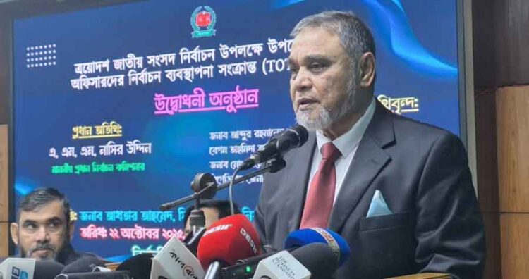 প্রধান নির্বাচন কমিশনার (সিইসি) এএমএম নাসির উদ্দিন ভোটের দায়িত্ব পালনকালে কোনো ধরনের চাপের কাছে নতি স্বীকার না করার আহ্বান জানিয়েছেন। বুধবার (২২ অক্টোবর) সকাল Centrally located at আগারগাঁওয়ের নির্বাচন প্রশিক্ষণ ইনস্টিটিউটে (ইটিআই) ত্রয়োদশ জাতীয় সংসদ নির্বাচন উপলক্ষে উপজেলা নির্বাহী কর্মকর্তাদের (ইউএনও) প্রশিক্ষক দলের প্রশিক্ষণ উদ্বোধন করেন তিনি। এ সময় তিনি বলেন, আমাদের একটাই বার্তা, কোনো প্রেসার বা অন্যায় চাপের কাছে নতি স্বীকার করব না। আইন অনুযায়ী এবং নিজস্ব বিবেচনায় দায়িত্ব পালন করতে হবে। সুষ্ঠু ও নিরপেক্ষ ভোট আয়োজনের জন্য মাঠ পর্যায়ের কর্মকর্তাদের দায়িত্বশীলতা ও সমন্বিত কাজের ওপর জোর দেন তিনি। সিইসি বলেন, আমাদের পক্ষ থেকে সার্বিক সহযোগিতা থাকবে। নির্বাচন কমিশনও কারও অন্যায় বা অবিচারমূলক চাপের কাছে নতি স্বীকার করবে না। আমাদের কোনো এমন আদেশ বা হুকুম দেবে না, যা আইনবিরুদ্ধ। সব নির্দেশনা আইনানুযায়ী অনুসরণ করতে হবে, এবং আপনাদেরও সেটা পালন করতে হবে। নির্বাচনের সময় ইউএনওদের প্রতি দায়িত্বশীলতা ও সমন্বিত কাজের অনুরোধ জানিয়ে তিনি বলেন, যে দায়িত্বই বা পড়ুক না কেন, তা আইনসম্মত, নিরপেক্ষ ও পেশাদারিত্বের সঙ্গে পালন করতে হবে। আমরা নতুন বাংলাদেশের স্বপ্ন দেখি, আর সেই স্বপ্ন পূরণের জন্য আইনের প্রতি শ্রদ্ধা নিশ্চিত করতে হবে। যই জাতি যতটা আইনের প্রতি সম্মান দেখায়, ততটাই সভ্য। ভোটের জন্য আইন-বিধি প্রতিপালন ও নিজের দায়িত্ব পালনের পাশাপাশি কার্যকর সমন্বয়ও জরুরি। তিনি বলেন, নির্বাচন একটি বড় বিষয়, এর জন্য সমন্বয় খুবই গুরুত্বপূর্ণ, যা মূলত আপনারাই করতে হবে। আইনশৃঙ্খলা বাহিনী, প্রিসাইডিং অফিসার, মনিটরিং সেল—সবাই সঙ্গে নিয়ে সতর্কভাবে কাজ করবেন। কোনো জরুরি পরিস্থিতি হলে দ্রুত তৎপর হয়ে ব্যবস্থা নিতে হবে। যাতে শেষ পর্যন্ত দেখা যায়, কারো কেন্দ্র দখল, বাক্স দখল করে গান বা মারামারি চলছে না, সবাই দায়িত্বপূরণের জন্য প্রস্তুত। এক্ষেত্রে আপনারা সকলে সচেতন থাকুন এবং যথাসময় পদক্ষেপ নিন। এই অনুষ্ঠানে উপস্থিত ছিলেন চার নির্বাচন কমিশনার এবং ইসি সচিব।