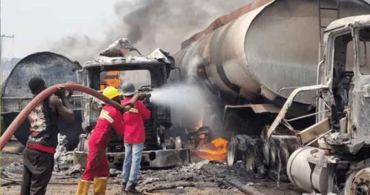 পশ্চিম আফ্রিকার দেশ নাইজেরিয়ায় একটি জ্বালানি ট্যাঙ্কারে ভয়াবহ বিস্ফোরণের ঘটনা ঘটেছে। এই দুর্ঘটনায় কমপক্ষে ৩৮ জন নিহত হয়েছেন। ঘটনাটি ঘটে যখন জ্বালানিবাহী এই ট্যাঙ্কারটি উল্টে যায়, তখন অনেক স্থানীয় মানুষ রাস্তায় পড়ে পড়া জ্বালানি সংগ্রহের চেষ্টা করেন। তখনই হঠাৎ করে ট্যাঙ্কারে বিস্ফোরণ ঘটে, যার ফলে ব্যাপক প্রাণহানি ঘটে। এই দুর্ঘটনা দক্ষিণাঞ্চলের এজ্জা গ্রামে দক্ষিন সড়কে ঘটে বলে স্থানীয় কর্তৃপক্ষ জানিয়েছে। খবর অনুযায়ী, বুধবার (২২ অক্টোবর) এই ঘটনা সম্পর্কে বিস্তারিত তথ্য প্রকাশিত হয় সংবাদমাধ্যম টিআরটি ওয়ার্ল্ডের প্রতিবেদনে।