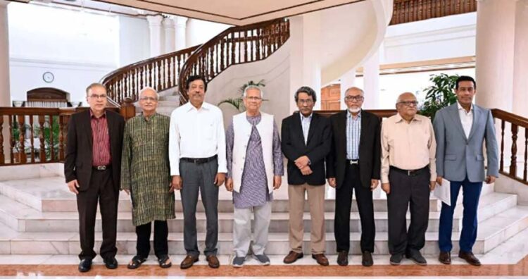 এ সময় উপস্থিত ছিলেন আইন উপদেষ্টা আসিফ নজরুল, সড়ক পরিবহন ও সেতু উপদেষ্টা মুহাম্মদ ফাওজুল কবির খান, গৃহায়ন ও গণপূর্ত উপদেষ্টা আদিলুর রহমান খান, পরিকল্পনা উপদেষ্টা ওয়াহিদউদ্দিন মাহমুদ, পরিবেশ, বন ও জলবায়ু উপদেষ্টা সৈয়দা রিজওয়ানা হাসান, ঐকমত্য কমিশনের সদস্য বিচারপতি মো. এমদাদুল হক, ড. ইফতেখারুজ্জামান, ড. বদিউল আলম মজুমদার, ড. মো. আইয়ুব মিয়া, আবদুল মুয়ীদ চৌধুরী এবং প্রধান উপদেষ্টা মনির হায়দার।