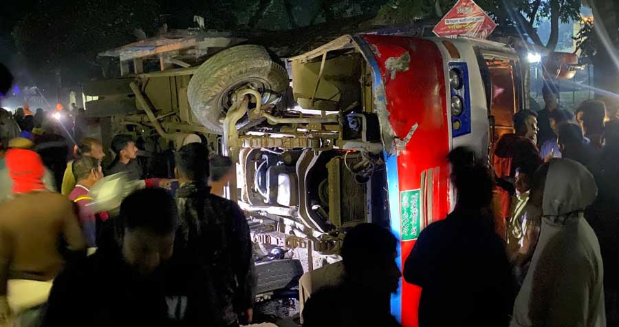 নওগাঁর বদলগাছীতে একটি যাত্রীবাহী বাস নিয়ন্ত্রণ হারিয়ে উল্টে গেলে ঘটনাস্থলেই ১৫ জন যাত্রী আহত হন। এই দুর্ঘটনা ঘটে আজ (২৪ নভেম্বর, সোমবার) রাত সাড়ে ৭টার দিকে বদলগাছী উপজেলার বিআরডিবি অফিসের সামনে। ঘটনাস্থল বদলগাছী-নওগাঁ আঞ্চলিক মহাসড়কের এক পাশে। দুর্ঘটনার কারণে ওই খণ্ডে প্রায় এক ঘণ্টা যান চলাচল বন্ধ হয়, যার ফলে দুই দিকে দীর্ঘ যানজট সৃষ্টি হয়। পরে ফায়ার সার্ভিস ও পুলিশ যৌথ প্রচেষ্টায় যান পরিচালনা স্বাভাবিক করে। প্রত্যক্ষদর্শীরা জানায়, রাজশাহী বাগমারার থেকে আসা একটি বিয়ে বাড়ির বাস carrying ৫০ জন যাত্রী নিয়ন্ত্রণ হারিয়ে রাস্তার ডিভাইডারে ধাক্কা খায়। চালকের বিচ্ছিন্নতায় বাসটি উল্টে যায়। দুর্ঘটনায় আহত যাত্রীদের মধ্যে তিনজনের অবস্থা গুরুতর হওয়ায় তাদের নওগাঁ জেলা সদর হাসপাতালে স্থানান্তর করা হয়। বাসে থাকা উজ্জ্বল নামের এক যাত্রী বলেন, আমরা রাজশাহীর বাগমারা উপজেলার মচমইল হাট থেকে জয়পুরহাটের এক বিয়ে বাড়িতে যাওয়া সময় এই ঘটনা ঘটে। হঠাৎ বাসটি ডিভাইডারে ধাক্কা খেয়ে নিয়ন্ত্রণ হারিয়ে উল্টে যায়। ঘটনাস্থলে ড্রাইভারকে খুঁজে পাওয়া যায়নি এবং অনেকের প্রয়োজনীয় জিনিসপত্র হারিয়ে গেছে। এদিকে, আহতদের দ্রুত উদ্ধার করে বদলগাছী উপজেলা স্বাস্থ্য কমপ্লেক্সে নিয়ে যায় ফায়ার সার্ভিস ও স্থানীয়রা।