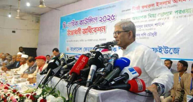 মির্জা ফখরুল বলেন, দেশের জনগণ এখন নির্বাচনের মাধ্যমে গণতন্ত্রের ফেরার অপেক্ষায়। তাই এখন প্রয়োজন মতপ্রকাশের স্বাধীনতা নিশ্চিত করা। গণতন্ত্রে বিভিন্ন মতাবলম্বী থাকা স্বাভাবিক—ভিন্ন মতকে গ্রহণ করে সমঝোতা করতেই হবে। দুর্ভাগ্যজনকভাবে, ভিন্ন র্তা পোষণ করলে তা গ্রহণ করা হয় না বা গুরুত্ব দেওয়া হয় না।