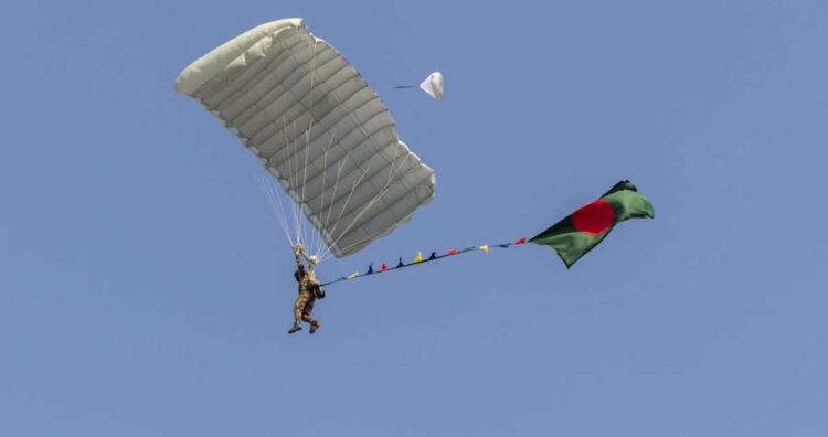সোমবার, ১৬ ডিসেম্বর, রাজধানীর তেজগাঁও পুরোনো বিমানবন্দরের সংলগ্ন প্যারেড গ্রাউন্ডে সশস্ত্র বাহিনীর উদ্যোগে এই বিশেষ আয়োজনের আয়োজন করা হয়। এই অনুষ্ঠানে অংশ নিয়েছিলেন ‘টিম বাংলাদেশ’ এর ৫৪ জন প্যারাট্রুপার, যারা স্বাধীনতার ৫৪ বছর পূর্তি স্মরণে আকাশ থেকে পতাকা হাতে অবতরণ করেন।