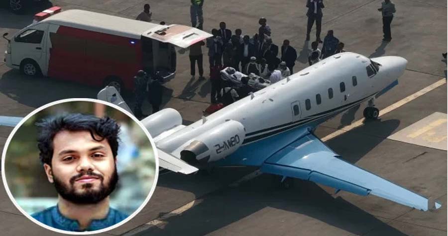 আগে, প্রায় একই সময়ে, দুপুর ১২টা ২২ মিনিটে সিঙ্গাপুরের উদ্দেশ্যে এয়ার অ্যাম্বুলেন্সটি ঢাকা ছেড়ে যায়। ওসমান হাদির পরিবার ও তার ঘনিষ্ঠ বন্ধুরা সিঙ্গাপুরে তার সঙ্গে রয়েছেন। তার সঙ্গে যাচ্ছেন তার ভাই ওমর বিন হাদি ও একজন ঘনিষ্ঠ বন্ধু আমিনুল হাসান ফয়সাল, যিনি হাদির রাজনৈতিক সহযোদ্ধা।