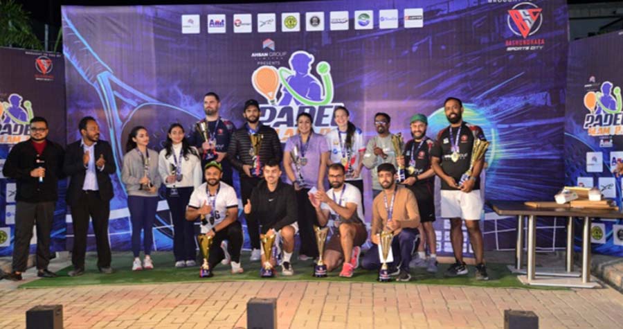 বসুন্ধরা স্পোর্টস সিটিতে সফলভাবে শেষ হলো ‘আহসান গ্রুপ প্রেজেন্টস প্যাডেল স্ল্যাম ২.০’, যা আয়োজিত হয়েছে ‘অ্যাসেট ডেভেলপমেন্টস’ এর সহযোগিতায়। এই তিন দিনব্যাপী প্রতিযোগিতার শেষ দিনে শনিবার (১৪ ডিসেম্বর) অনুষ্ঠিত হয় জমকালো ফাইনাল ম্যাচগুলি, যেখানে প্রতিযোগীরা তাদের নানা রকম দক্ষতা 보여 দেন।