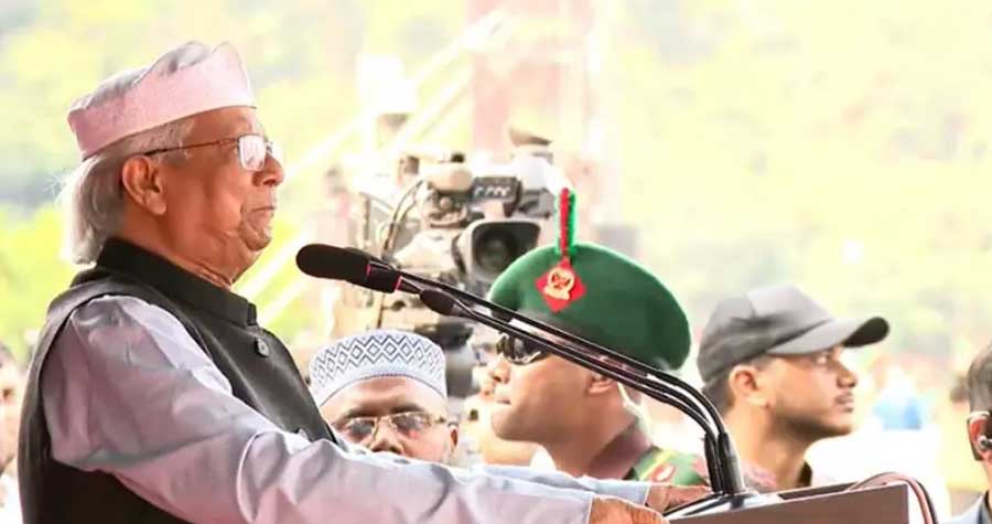 প্রধান উপদেষ্টা বলেন, ‘ওসমান হাদির মূল মন্ত্র ছিল বল বীর চির উন্নত মম শির, যা আমাদের শক্তি ও সাহসের উৎস। তিনি আমাদের শেখান, কখনো মাথা নত না করতে। এই মন্ত্র আমাদের অন্তরে স্থায়ীভাবে রয়ে যাবে।’