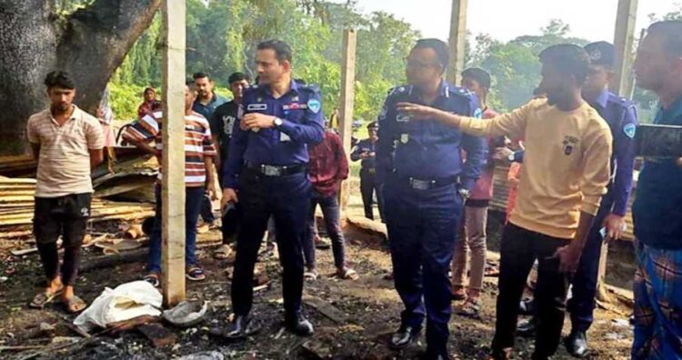 ঘটনার সময় স্থানীয়রা দেখেছেন, বাড়ির দরজা বাইরে থেকে কাপড় দিয়ে বাঁধা ছিল এবং ঘরের কাছেই কেরোসিন মাখা কাপড় পড়ে থাকতে দেখা গেছে। পুলিশ ঘটনাস্থল থেকে বিভিন্ন রাজনৈতিক ও প্রশাসনিক ব্যক্তির নাম, মোবাইল নম্বরসহ লেখা ব্যানার জব্দ করেছে। আগুনে ঘরের আসবাবপত্র, গুরুত্বপূর্ণ কাগজপত্র ও অন্যান্য মালামাল পুড়ে গিয়েছে। প্রাথমিক ধারণা, ক্ষতির পরিমাণ প্রায় ৮ থেকে ১০ লাখ টাকা বলে মনে করছেন পুলিশ।
