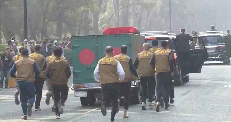 ঢাকার মানিক মিয়া অ্যাভিনিউতে জানাজার নামাজ শেষে সাবেক প্রধানমন্ত্রী, গণতন্ত্রের অঙ্গীকারভিত্তি নেত্রী ও বিএনপি চেয়ারপারসন বেগম খালেদা জিয়ার মরদেহ জিয়া উদ্যানে নেওয়া হচ্ছে। বুধবার (৩১ ডিসেম্বর) বেলা সাড়ে তিনটার দিকে স্বামী, শহীদ রাষ্ট্রপতি ও বীর মুক্তিযোদ্ধা জিয়াউর রহমানের পাশে তাকে রাষ্ট্রীয় মর্যাদায় সমাহিত করা হবে। এ সময় খালেদা জিয়ার পরিবারের সদস্য, গুরুত্বপূর্ণ সরকারি কর্মকর্তা, বিদেশি কূটনীতিক, বিএনপি নেতা-कর্মী, রাজনৈতিক ব্যক্তিত্ব ও বিভিন্ন স্তরের মানুষ উপস্থিত থাকবেন। দাফনের কাজে কোনো অযোগ্য ব্যক্তি বা সাধারণ মানুষের প্রবেশ নিষেধ থাকবে এবং দাফন শেষ না হওয়া পর্যন্ত শেরেবাংলা নগরের জিয়া উদ্যানে জনসাধারণের চলাচল সীমিত থাকবে। এর আগে মানিক মিয়া অ্যাভিনিউয়ে জানাজার নামাজ পড়ানো হয়, যেটি পরিচালনা করেন বায়তুল মোকাররমের খতিব মুফতি মুহাম্মদ আবদুল মালেক। জানাজায় অংশ নেন জাতীয় নেতৃত্ব, সংসদ সদস্য, সরকারি কর্মকর্তা-কর্মচারী, বিএনপি নেতাকর্মী, রাজনৈতিক নেতা, আলেম-ওলামা, বিদেশি কূটনীতিক সহ লাখো জনতা। মরদেহ সচেতনভাবে মানিক মিয়া অ্যাভিনিউয়ের পশ্চিম প্রান্তে রাখা হয়। রাজধানীর বিভিন্ন সড়ক ও স্থানে লাখ লাখ মানুষ স্বতঃস্ফুর্তে জানাজার নামাজে অংশ নেন। জানা যায়, তিনি মঙ্গলবার (৩০ ডিসেম্বর) ভোর ৬টায় রাজধানীর এভারকেয়ার হাসপাতালে চিকিৎসাধীন অবস্থায় মৃত্যুবরণ করেন (ইন্না লিল্লাহি ওয়া ইন্না ইলাইহি রাজিউন)। তার বয়স হয়েছিল ৮০ বছর। এই সময় তার পাশে ছিলেন বিএনপির ভারপ্রাপ্ত চেয়ারম্যান ও তার ছেলে, জননেতা তারেক রহমান।