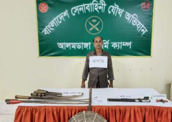 চুয়াডাঙ্গার আলমডাঙ্গা উপজেলার কেশবপুর পূর্বপাড়ায় যৌথ বাহিনীর অভিযান চালিয়ে অস্ত্র ও একজন যুবককে আটক করা হয়েছে। শুক্রবার (৩ অক্টোবর) দিবাগত...